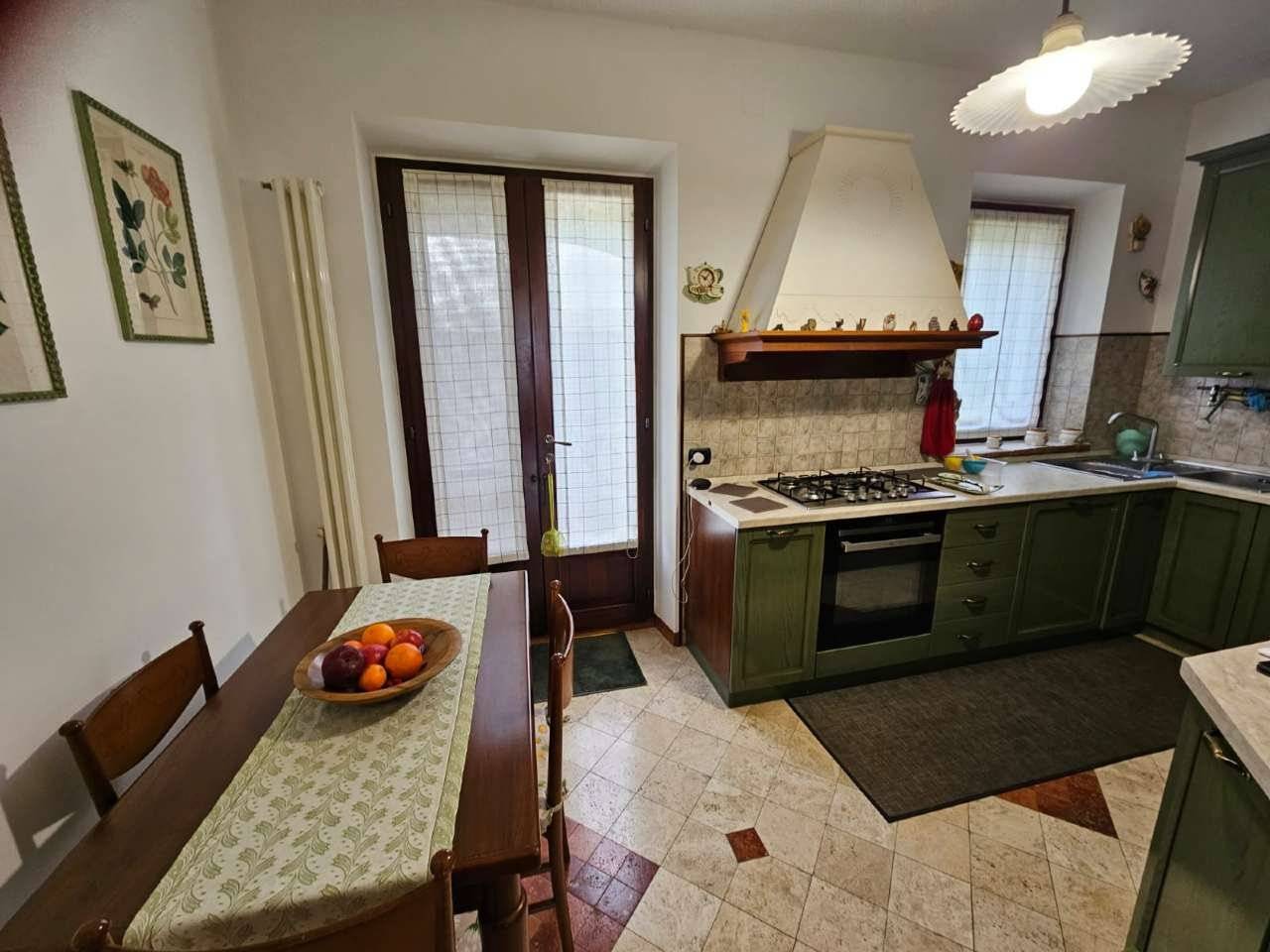 Al piano terra, la zona giorno è arricchita da un accogliente camino e una cucina separata con accesso diretto alla corte posteriore.